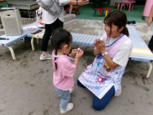 いちご組さんは幼稚園で運動会を行いました。お家の方と一緒に楽しい運動会になりました。一緒にお昼ごはんも食べて嬉しそうでした。