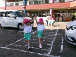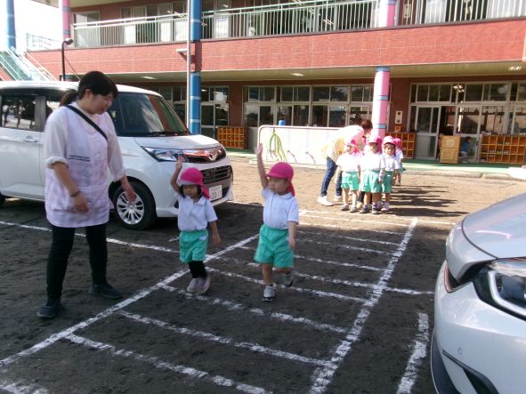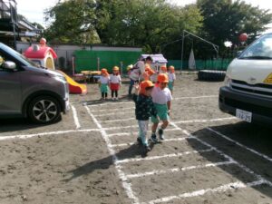 年少組さんは、園内に道路をつくり交通ルールの確認をしました。