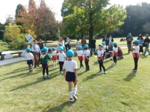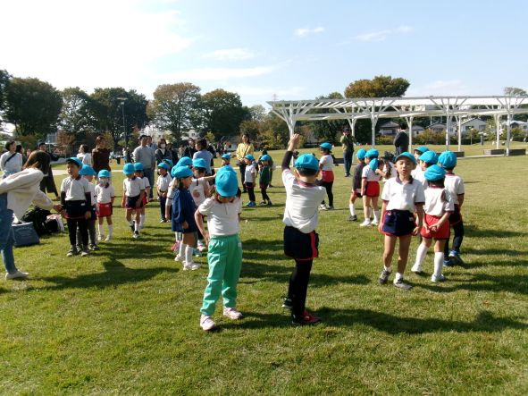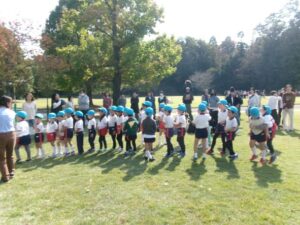 年長組さんはお天気が良い中、親子でグリンセンターに行ってきました。ウォークラリーでたくさん歩き、ゲームではクラスのお友だち、お家の方と楽しい時間を過ごしました!