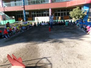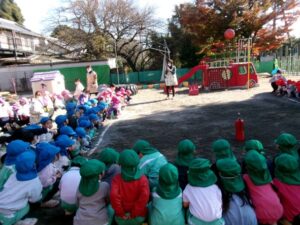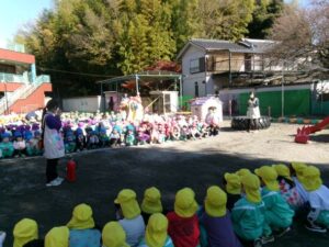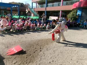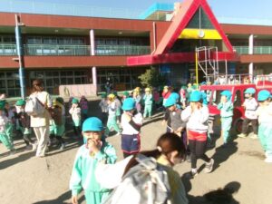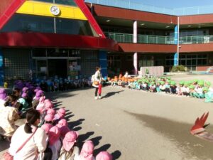 火事を想定しての総合避難訓練を行いました。今までの経験から、火事が起きた時に、どのように行動すれば良いのかをよく理解し確認しながら訓練をすることができました。