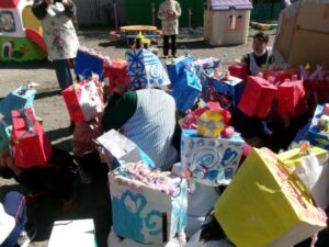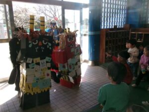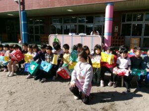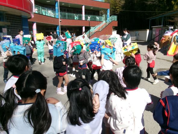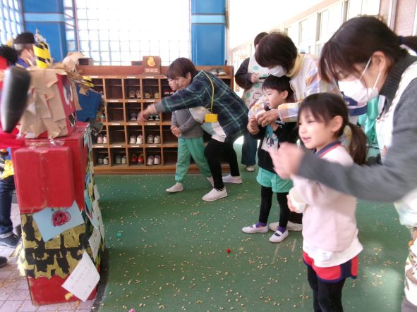 それぞれ退治したい悪い鬼を豆に込め「鬼はそと~。福はうち!」と元気に豆をまきをしました。