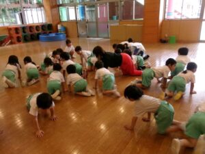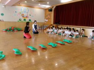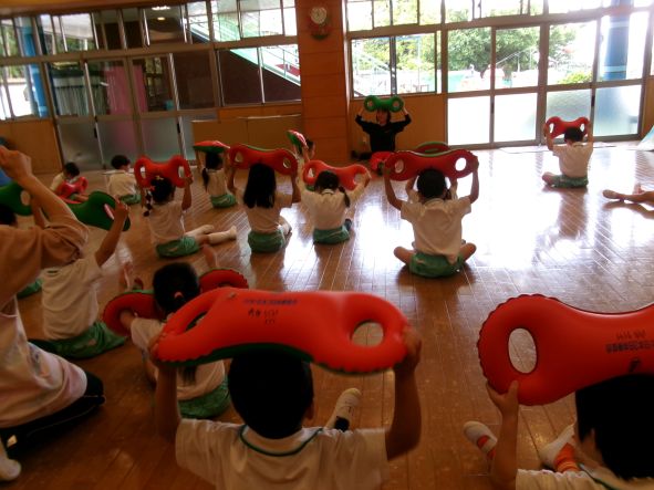 今年度初めての3B体操。みんなで音楽に合わせ、道具を使い楽しく活動出来ました!